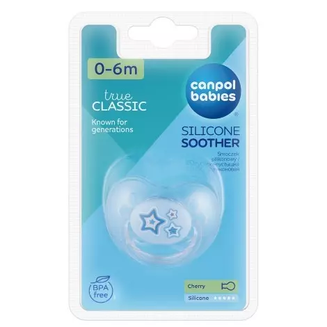 Пустышка Canpol babies круглой формы изготовлена из высококачественного силикона без вкуса и запаха. Профилированная форма основания пустышки позволяет ребенку свободно дышать через нос. Отверстия в основании обеспечивают свободное прохождение воздуха и предотвращают раздражение чувствительной кожи ребенка. Приятный дизайн обязательно понравится вашему малышу. Приятный дизайн обязательно понравится вашему малышу. Без бисфенола А. Рекомендуемый возраст от 0 до 6 месяцев. Нельзя использовать в паровом стерилизаторе.