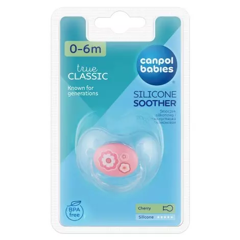 Пустышка Canpol babies круглой формы изготовлена из высококачественного силикона без вкуса и запаха. Профилированная форма основания пустышки позволяет ребенку свободно дышать через нос. Отверстия в основании обеспечивают свободное прохождение воздуха и предотвращают раздражение чувствительной кожи ребенка. Приятный дизайн обязательно понравится вашему малышу. Приятный дизайн обязательно понравится вашему малышу. Без бисфенола А. Рекомендуемый возраст от 0 до 6 месяцев. Нельзя использовать в паровом стерилизаторе.