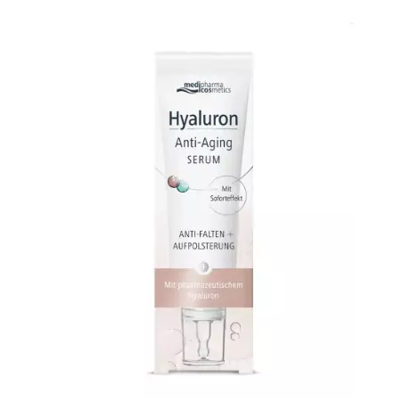 С возрастом выработка собственной гиалуроновой кислоты сокращается, кожа теряет свою упругость, появляются морщины. Medipharma Cosmetics Hyaluron сыворотка "Упругость" содержит концентрат гиалуроновой кислоты, который способствует уменьшению морщин с первого применения, кожа разглаживается и становится более мягкой и упругой.