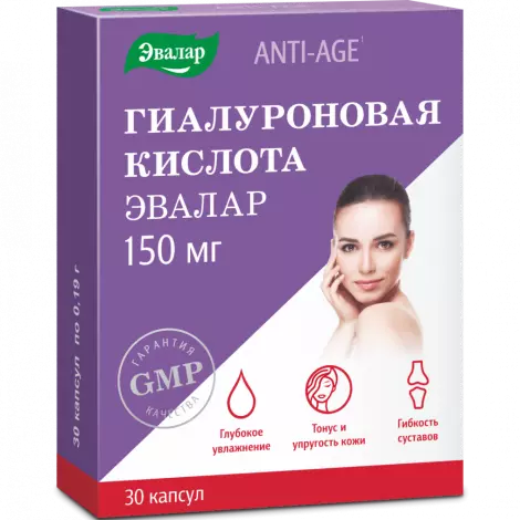гиалуроновая кислота (высокомолекулярная и низкомолекулярная), компонент капсулы (пищевая добавка): гидроксипропилметилцеллюлоза (загуститель), целлюлоза микрокристаллическая (носитель); стеарат магния и диоксид кремния аморфный (агенты антислеживающие).