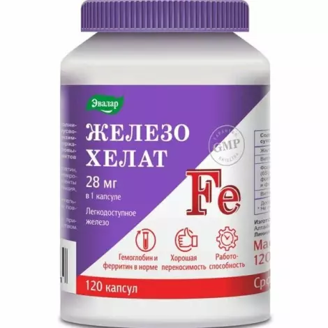 Железо хелат Эвалар рекомендуется в качестве биологически активной добавки к пище – дополнительного источника железа, витаминов С, В9 и В12.