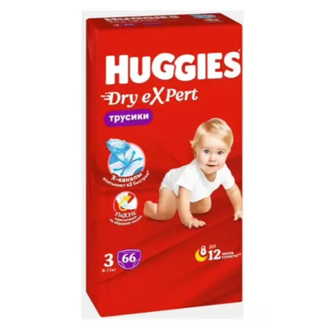 Инновационные подгузники-трусики Huggies Dry eXpert с Х-каналами – настоящие эксперты в сухости и комфорте.