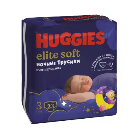 Ночные трусики-подгузники Huggies Elite Soft Overnites (Хаггис Элит Софт) специально созданы для заботы о коже малыша всю ночь!