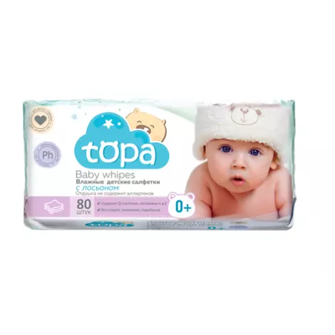 Влажные салфетки для детей Topa 80 с лосьоном — это качественные гигиенические средства ухода за кожей ребенка. Производитель ООО «Кампари» предлагает влажные детские салфетки с лосьоном Topa купить оптом.