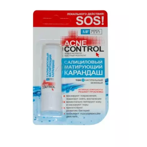 Карандаш салициловый Medicalfort Acne Control матирующий идеально маскирует недостатки кожи: воспаления, покраснения, рубцы, прыщи.