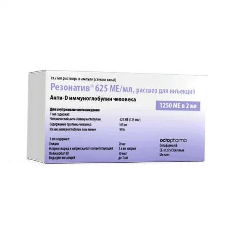 Производители Octapharma AB, Швеция Резонатив р-р для инъекций 625МЕ/мл в амп. 2мл №1