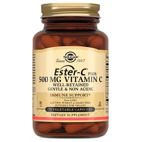 Витамин С не синтезируется в организме человека (в отличие от большинства млекопитающих), и должен поступать с пищей, поскольку является регулятором множества биохимических реакций и защитных механизмов. Витамин С играет важную роль в синтезе нейромедиаторов – норадреналина, серотонина, а также желчных кислот из холестерина, является антиоксидантом, участвует в синтезе коллагена, карнитина, гормонов и аминокислот, необходим для здоровья костей и кровеносных сосудов, поддерживает функцию иммунной системы и облегчает всасывание железа. «Эстер-С» — это запатентованная формула витамина С, которая обеспечивает высокую степень усвоения витамина С и не оказывает негативного воздействия на желудок. «Эстер-С» — это не обычный витамин С, а уникальный продукт, обладающий целым рядом преимуществ. «Эстер-С» содержит активные метаболиты витамина С, благодаря чему «Эстер-С» быстрее усваивается и дольше сохраняет свою активность в организме по сравнению с обычным витамином С. Люди, страдающие гастритом или язвой желудка, избегают приема витамина С из-за побочных эффектов, так как витамин С, являясь кислотой, может вызвать расстройство желудка. Солгар «Эстер-С» имеет нейтральное значение рН, оказывает мягкое действие на желудок, не раздражая его. В состав «Эстер-С» входят также цитрусовые флавоноиды (лимона, апельсина, грейпфрута, лайма, мандарина), рутин, плоды шиповника и ацеролы (барбадосской вишни), обеспечивающие антиоксидантные свойства продукта.