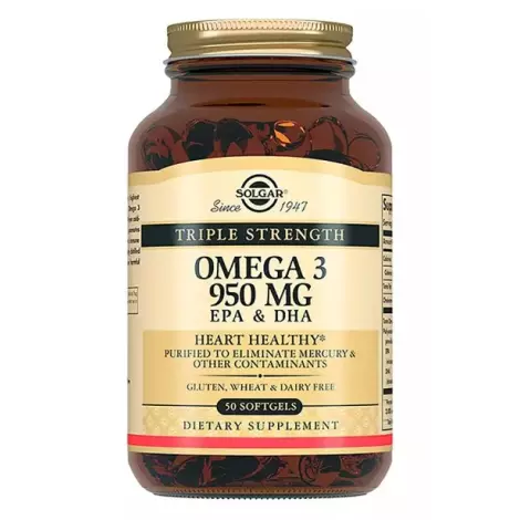 Из всех продуктов Солгар, содержащих жирные кислоты класса Омега-3, «Тройная Омега-3 950 ЭПК и ДГК» содержит самую высокую дозировку Омега-3 ПНЖК - 950 мг в одной капсуле.