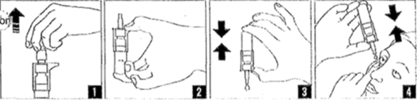 - Перед первым использованием флакона переверните его кончиком вниз и 2-3 раза нажмите на нажимную пластину большим пальцем до появления первой капли.